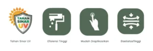 • Cat ini tahan terhadap paparan sinar matahari sehingga tidak mudah pudar meskipun terpapar lama.